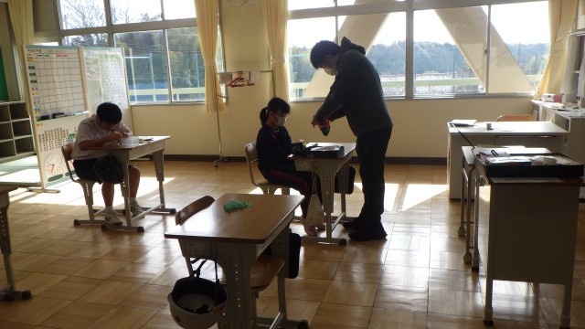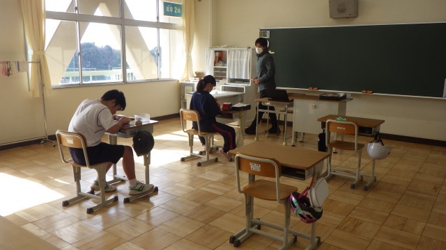 若草学級の授業風景です。家庭科と技術に分かれて、作品を作っていました。家庭科では布のサイコロを作るために、裁縫を行っていました。技術ではバターナイフを作るために、電動鋸で木材を切っていました。完成が楽しみです。