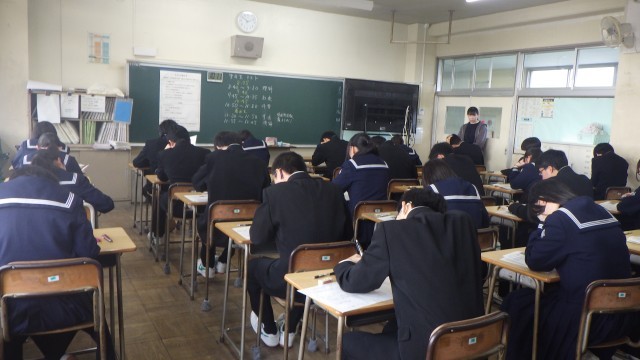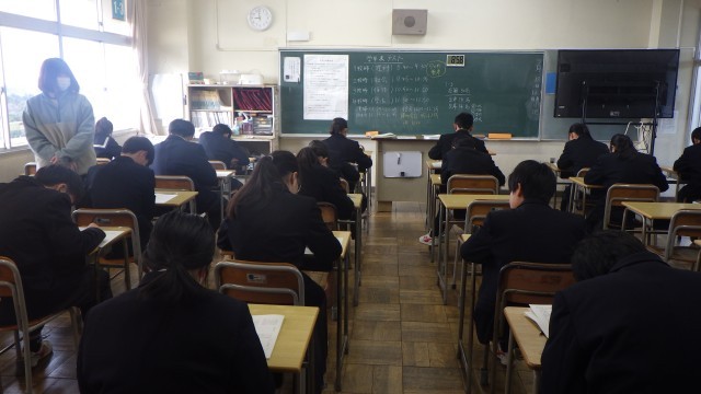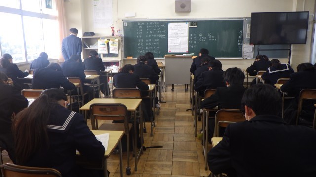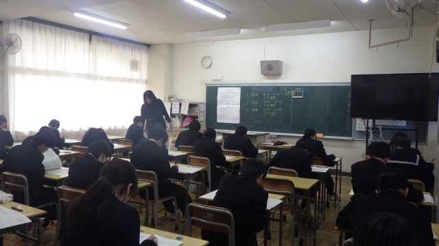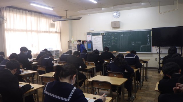 本日は1、2年生の学年末テスト2日目となります。どのクラスも集中して問題を解いていました。問題を早く解き終わっても、時間一杯見直しをしていました。1年間の最後のテストなので、振り返りもしっかりと行って、来年度に繋げてほしいです。