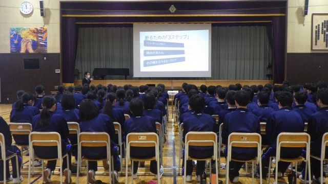本日は3年生を対象に薬物乱用防止教室がありました。卒業をする前に、改めて危険性や中毒性があること、持っているだけで重罪になることを確認しました。後半は薬物を勧められたときの断り方をロールプレイングを通して練習していました。卒業をしても自分の身は自分で守ることを大切にしてください。