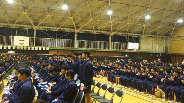 2月27日、体育館にて3年生を送る会を行いました。各学年が、3年生に感謝と応援の気持ちを込めて一生懸命に準備をしてきました。1年生は、事前に用意した動画、呼びかけ、ダンス、学年合唱「RPG」を発表しました。1年間の大きな成長を感じる、素晴らしい発表を披露してくれました。壁面にも素敵な装飾を準備してくれていました。