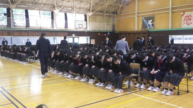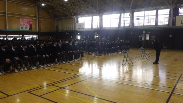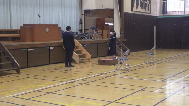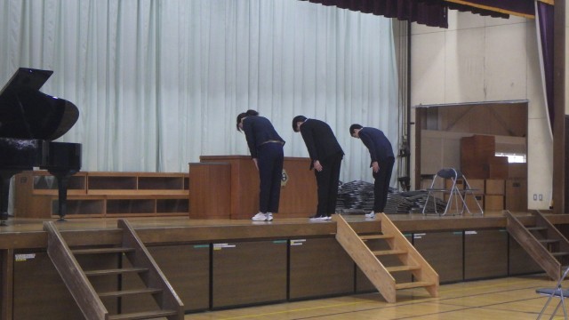 1、2年生の卒業式練習の様子です。在校生は今日が初めての練習だったため、卒業式への心構えや式での礼法について学んでいました。先生方が見本となりながら時間一杯練習をしていました。3年生の卒業式へ向けて、在校生も気持ちを高めていきます。