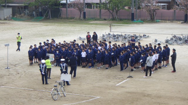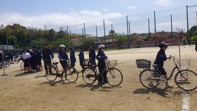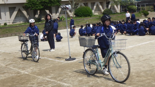本日は鎌ケ谷警察署、鎌ケ谷交通安全協会、市役所の道路河川管理課の協力のもと、1年生を対象に自転車安全教室が開かれました。安全に関する講話だけでなく、実際に自転車に乗って安全を確認しながら走行することができました。自転車に乗る際は、今日学んだことを思い出しながら乗っていきましょう。