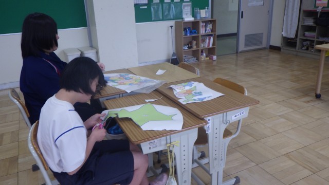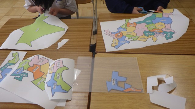 若草学級の授業の様子です。2時間目は社会科の授業を行っていました。都道府県の学習をしていて、パズルのピースを作りながら楽しそうに学んでいました。完成するのが楽しみです。