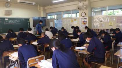 2年生は、数学で2元1次方程式の仕組みについて考えています。内容も少しずつ難しくなってきました。国語は物語文に取り組んでいます。先生からの質問にすぐに答えている様子が見られました。音楽は合唱練習の様子です。今週行われる合唱祭に向けて一段と響きが良くなってきています。本番が楽しみです!