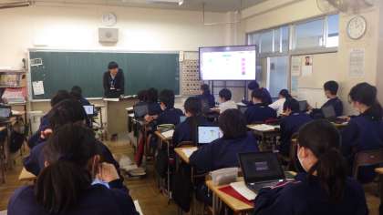 2年生、道徳の様子です。自然愛護や公正公平について考えています。クロームブックを使って意見も共有していました!積極的に参加する姿が印象的でした!