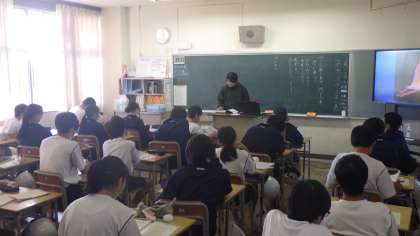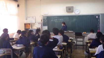 1年生、道徳の様子です。1年生は自然愛護や個性の伸長について、お互いの意見を交換しながら、テーマについて考えていました。