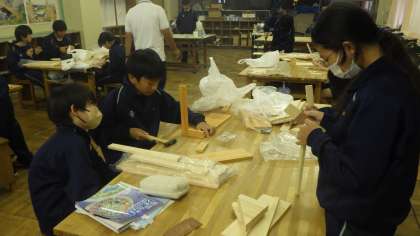 1年生は、技術と数学の授業の様子です。技術は、木材加工を行っています。ニス塗りや釘打ちなどの行程にも入ってきています!数学は、班で方程式の問題づくりに取り組んでいます。身近なものを題材にして、楽しく活動していました!