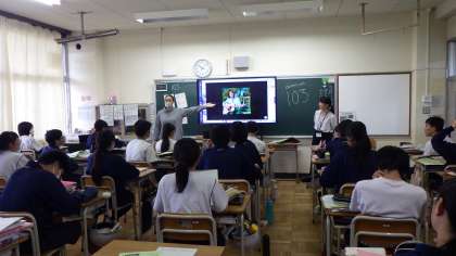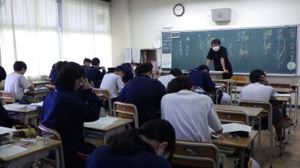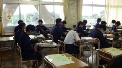 3年生は、英語と国語の学習の様子です。英語は、ALTの先生と一緒に人物紹介の英文をつくって発表する活動を行っていました。国語は、歴史的かな遣いと現代かな遣いについて学んでいました。